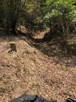 約15分で登山道入り口から山頂に到着することができました。登山道入口がすでにある程度の標高があるので、さらにふもとの運動公園やバス停などからは距離があるのでそれなりの登山コースになると思います。登山道入口は豪雨災害の影響で崩落していましたが、中国自然歩道で木階段も整備されています。登りは割と急なところばかりですが、約10分で上空がすっかり開け広島市街地方面が望めます。一旦大きく降って登り返すと再び大展望です。