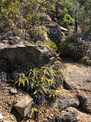 岩場が増えてきました。歩きにくいのですが、所々に目印があるのでなんとか目標に向かって登ってい感じです。(登山口から約21分)
