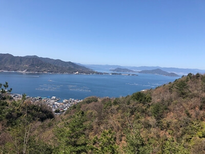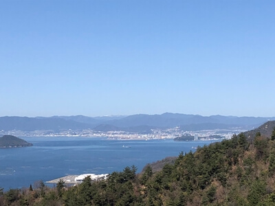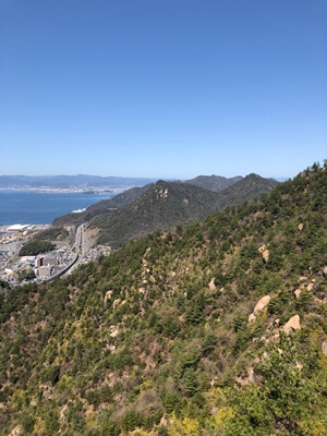 途中でビューポイントがいくつかあります。これは広島市の宇品辺りの景色です。きれいな景色は癒されます。(登山口から約27分)