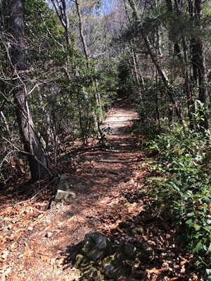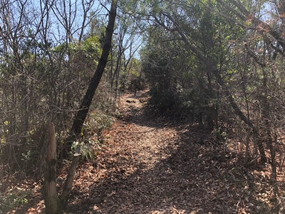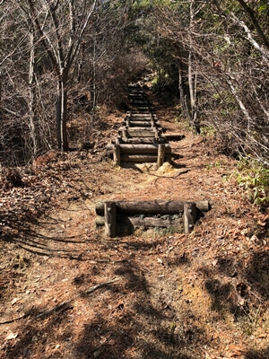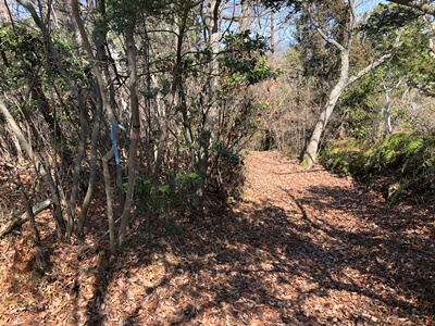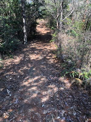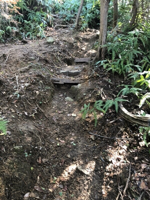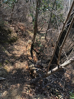 しばらくはこのようなあまり足場のよくない山道が続いていきます。(登山口から約11分)
