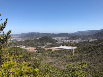 眼下には焼山の風景を見ることができます。工業団地あたりでしょうか。
