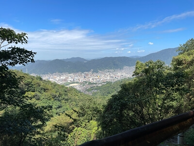 登山口まででも坂がきつく、標高がある程度あります。呉駅から距離も近くて交通の便は良いので気軽に登れる山です。登るまでの登山道や山頂の景色は良いので気持ち良いですし、常に舗装された車道を通るので登山という感じはありませんが、足元がしっかりしているので危険も少ないです。