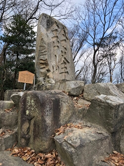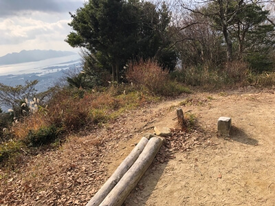 山頂は東峰に比べると広くなくて景色もすごく見えるわけではありませんが、木が置かれているのでここに座って景色を見ながら休憩できます。鈴が峰公園登山口からの登山ルートで登った感想
