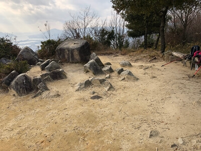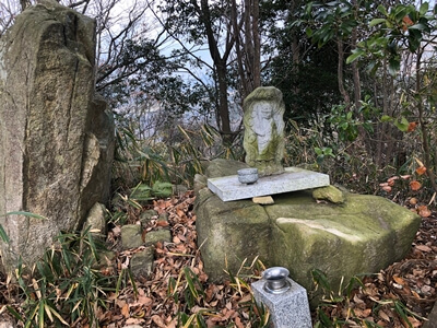しばらくすると鈴峯の石碑に到着します。芸予地震の際に倒れましたが、復元されています。(登山口から約24分)こんな重いものでも倒れるんですね。