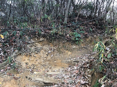 この登山ではあまり見かけないロープがつながれています。確かに足元注意で登りにくいです。(登山口から約39分)