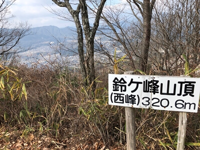 鈴が嶺東峰山頂に到着しました。312mということでしたが登った気分に十分なります。(登山口から約40分)そして看板にあったあと5分という時間もぴったりでした。