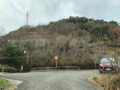 遠距離から見るとこんな感じです。どこにでもある山のように見えます。