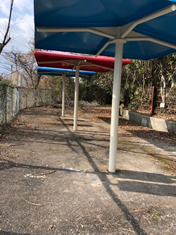 登る途中には屋根のついたところがあって、ここで景色を眺めるためでしょうか。(登山口から約6分)