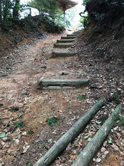 意外と階段が多くてしかも歩幅が難しい間隔で続いていきます。(登山口から約6分)