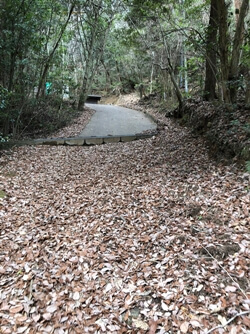 登っていくとアスファルトが突然現れます。ここまでくれば頂上はあと少しです。(約25分)