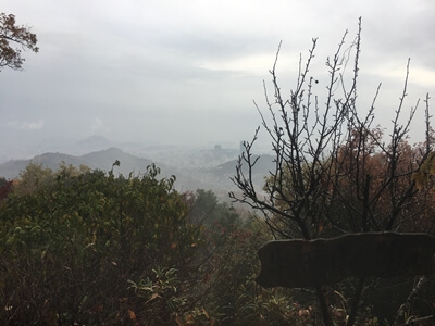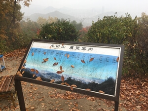 今回はあいにくの天気で足元を気をつけながら登りましたが、約33分で牛田山山頂に到着することができました。往復1時間ちょっとで行って帰れるうえに、牛田山は広島駅にも近くてアクセスもバッチリです。案内標識もいたるところにあって、迷うことがないので初心者には最適の登山ルートではないでしょうか。登山ルートもたくさんあるので、頂上からルートを変えて登れば飽きることもありません。さらになんといっても山頂に登った時の広島市街が眼下に見れるのは気持ちが良いです。
