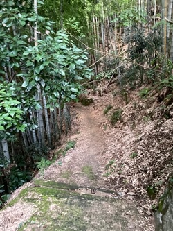 途中はこのような低い段差がありますが、緑のコケが生えているので足元は滑りやすいです。(坂駅から約10分)